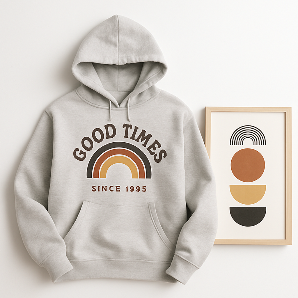 Soft-touch t-shirts and hoodies with clean, easy-to-wear designs. Customers can personalize text, coordinates, dates or short quotes.